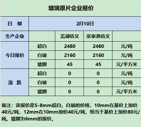 2025年2月10日原片玻璃企业报价