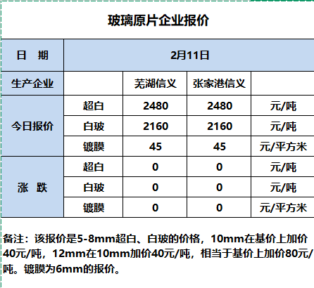 2025年2月11日原片玻璃企业报价